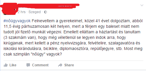 Néhány napja terjed a Facebookon a #nőügyvagyok hashtag, amellyel civilek és közéleti személyiségek egyaránt az elhangzottakkal kapcsolatos felháborodottságuknak adnak hangot. Posztolt már így a témában többek között a Magyar Női Érdekérvényesítő Szövetség, az Üvegplafon, a Nők az egészségügyért Magyarország oldal, a Nők lázadása és számos civil, közülük válogattunk.