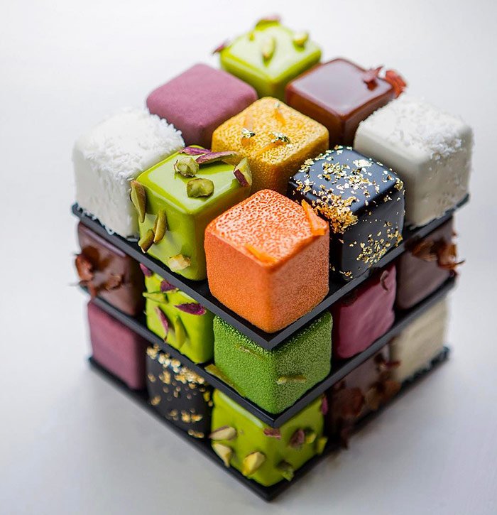 A francia Cédric Grolet legutóbb a magyar Rubik-kockát álmodta meg ehető verziókban, és olyan gyönyörűségek születtek, hogy szinte kár lenne őket megenni.