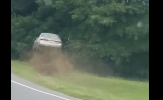 Az egyik pillanatban aztán annyira elveszti a kontrollt az autó felett, hogy oldalra sodródik, le az útról, a szemben szabályosan közlekedők teljes megdöbbenésére. Ezután, bár sikerül visszatérnie saját sávjába, ám újra lesodródik az útról, ezúttal jobb oldalra.