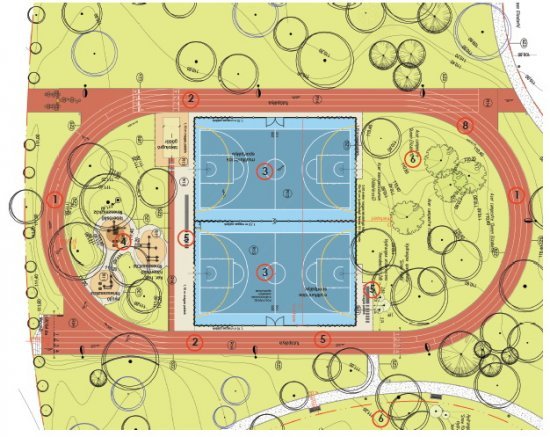 Éppen ezért a leghangsúlyosabb kérés volt egy teljes egészében átlátható, rekortán burkolatú futókör kialakítása, benne szintidő-mérésre alkalmas egyenes szakasszal. Ezen felül távolugrógödröt és két multifunkciós pályát is kértek a pedagógusok az egykori Pecsa felett jelenleg is használatban lévő, leromlott sportterület helyett, mégpedig egy tanóra keretein belül elérhető közelségben.