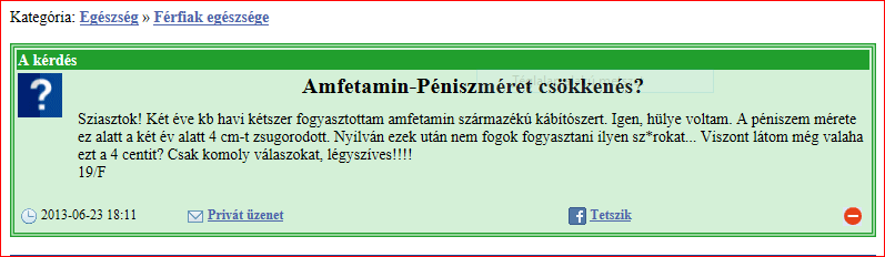 Az érdeklődő azt szeretné tudni, hogy visszanő-e vajon az a 4 centiméter, amely péniszéből csökkent, miután amfetamint fogyasztott az illető.