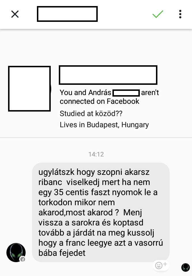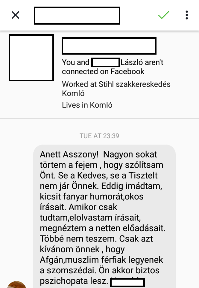 Egy másik azt írta: “Hazaáruló büdös kurva vagy!”